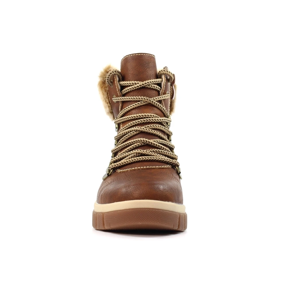 - Fastenings: seven eyelet lace-up and side zip