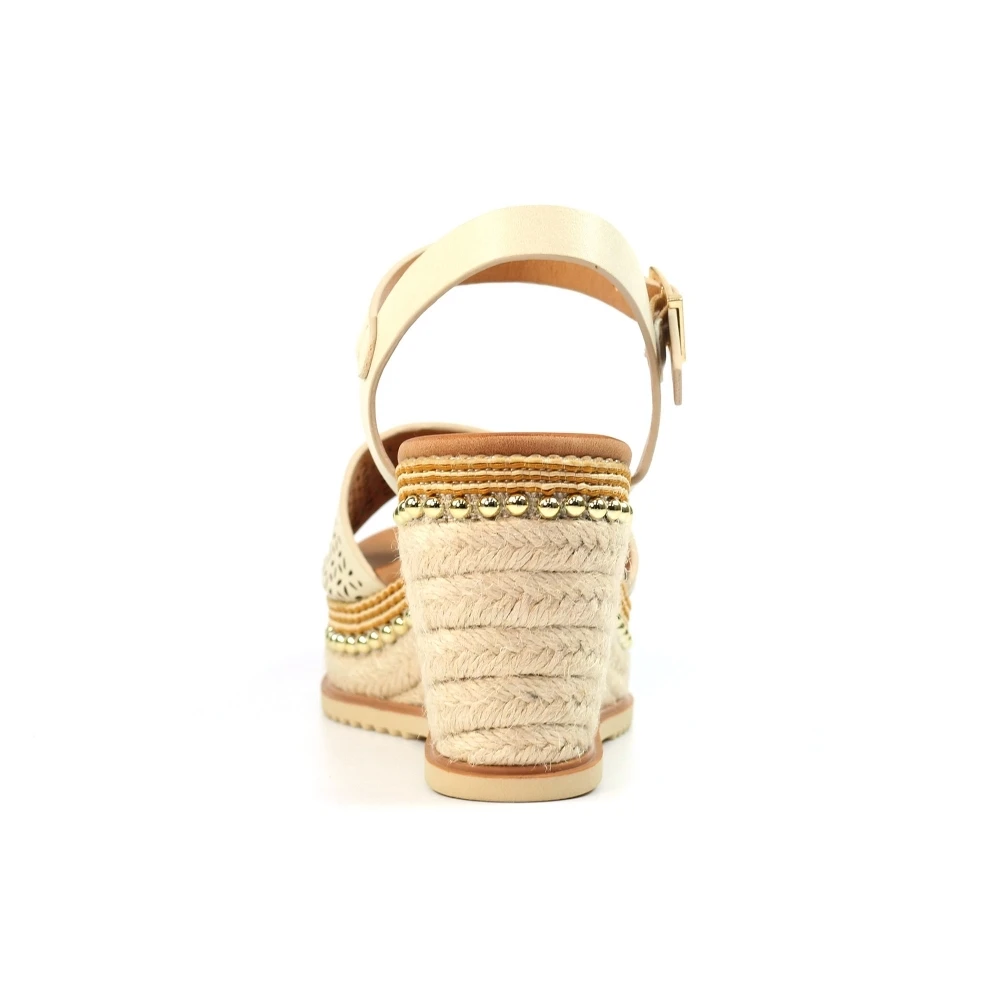 - Decoration: cut out design upper strap, woven style wedge heel with gold studs