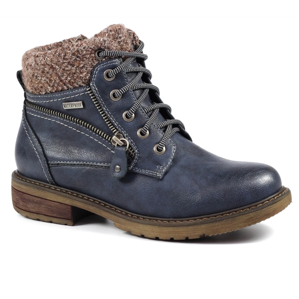 - Fastenings side zip and lace-up