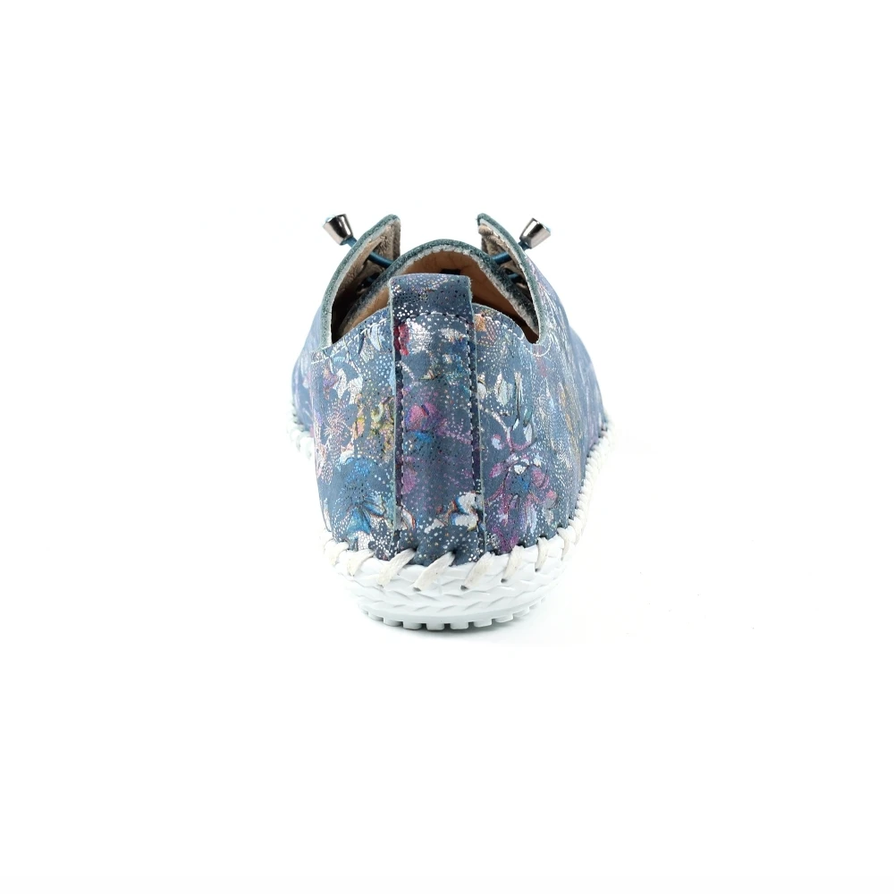 LUNAR Exbury Blue Floral Leather Plimsoll