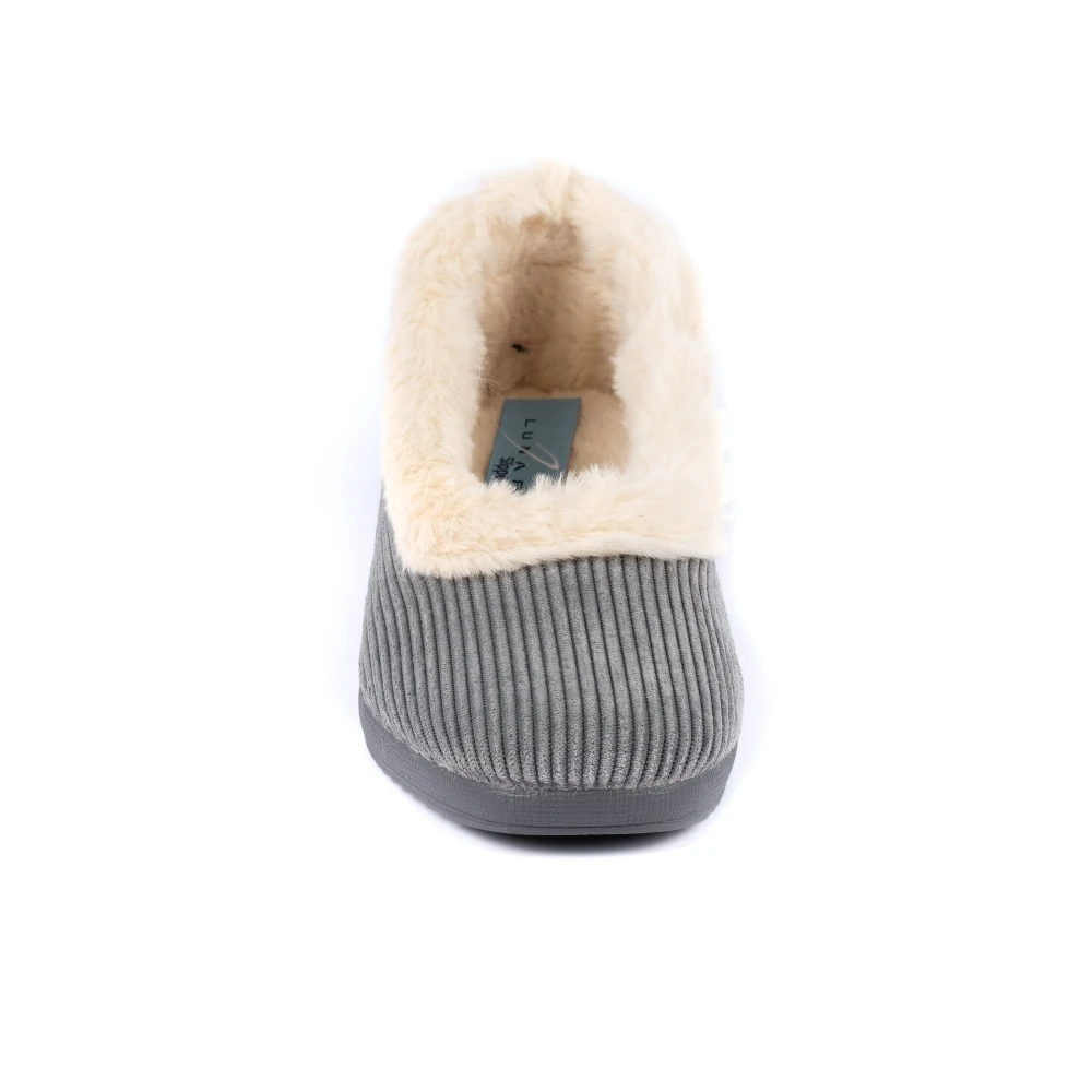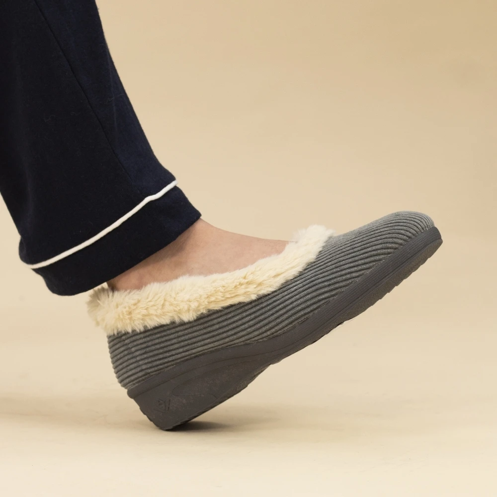 LUNAR Glynis Grey Fur Trim Wedge Slipper