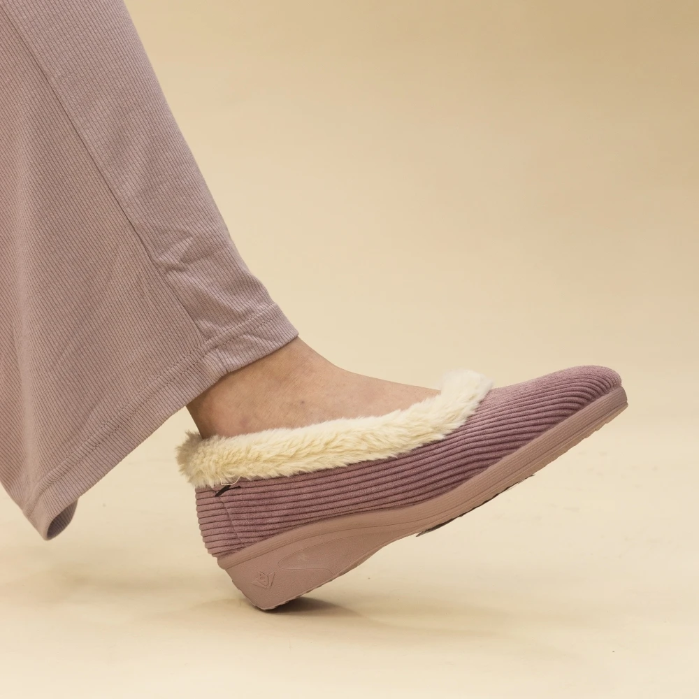 LUNAR Glynis Heather Fur Trim Wedge Slipper