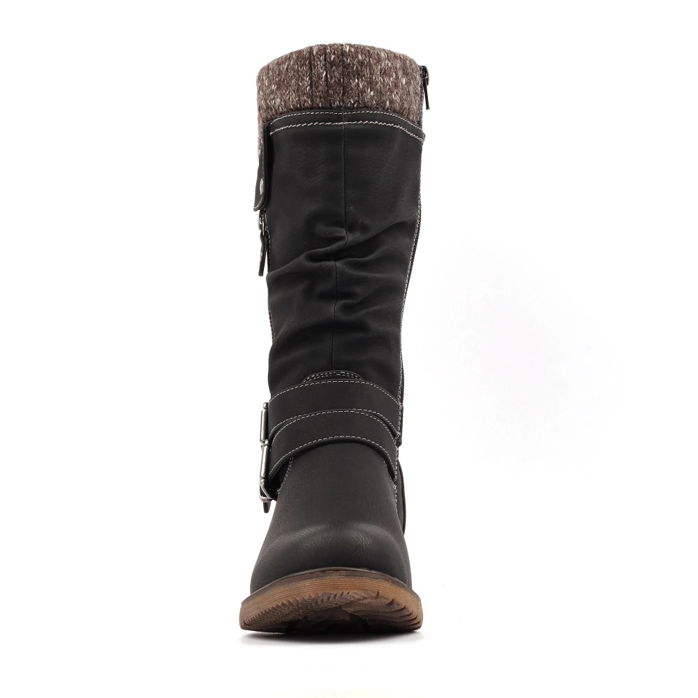 - Fastenings: side zip and ankle straps with adjustable buckles