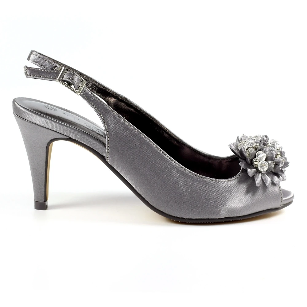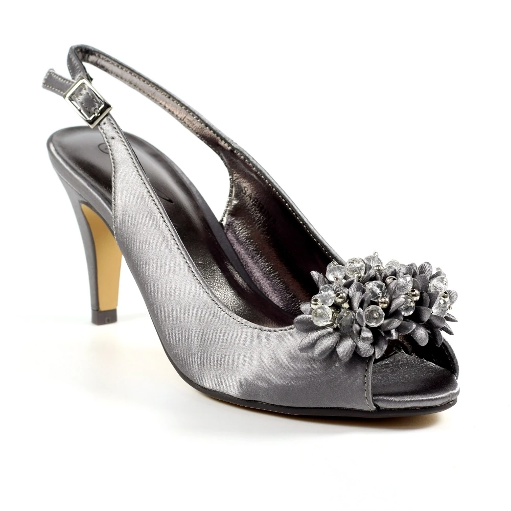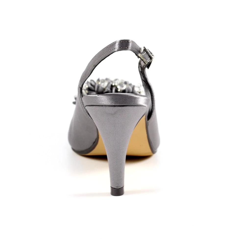 LUNAR Sabrina Dark Grey Satin Slingback Court
