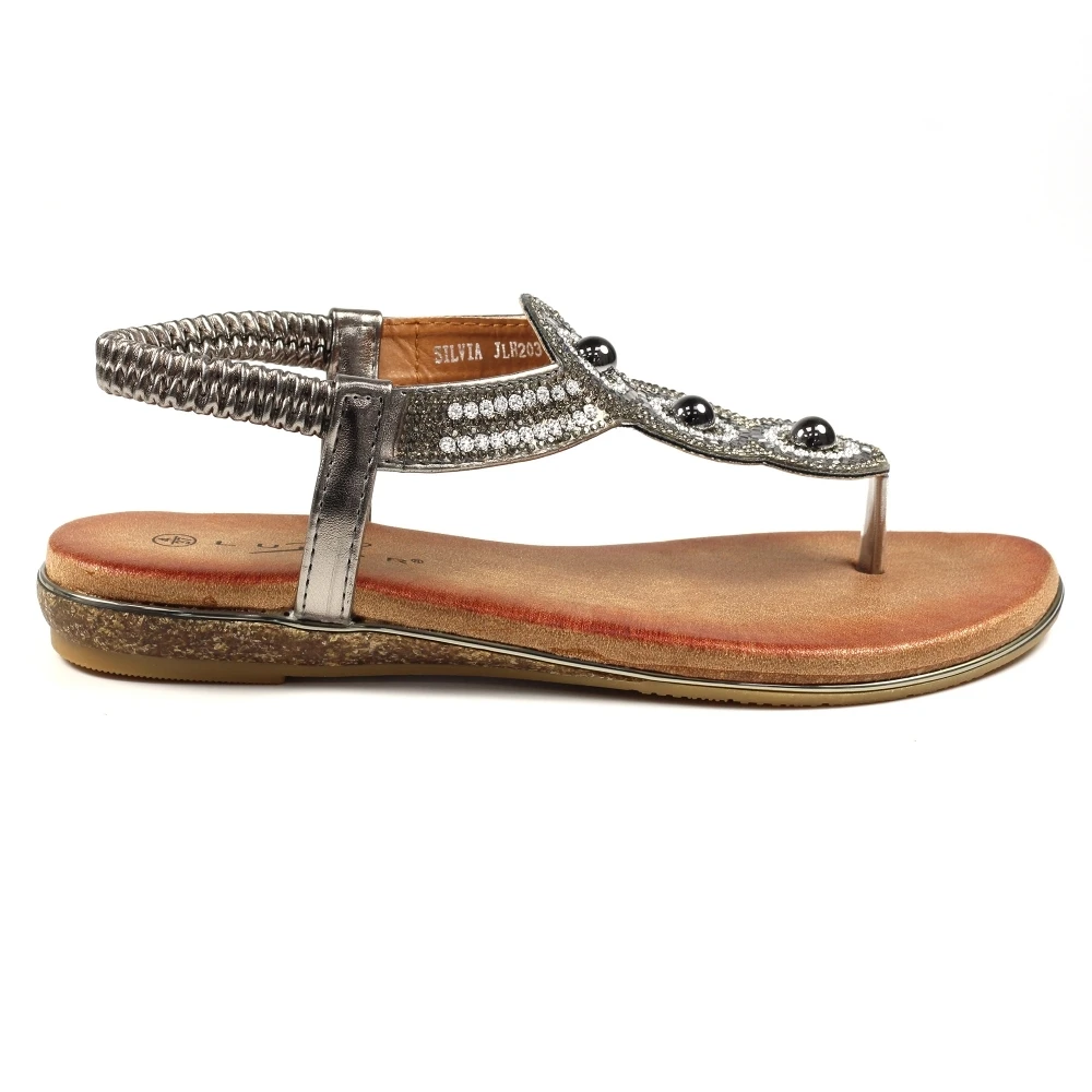 LUNAR Silvia Pewter Toe Post Gem Sandal
