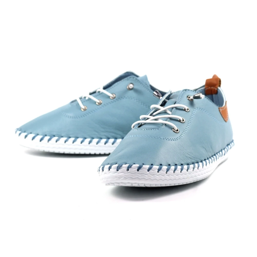 LUNAR St. Ives Light Blue Leather Plimsoll